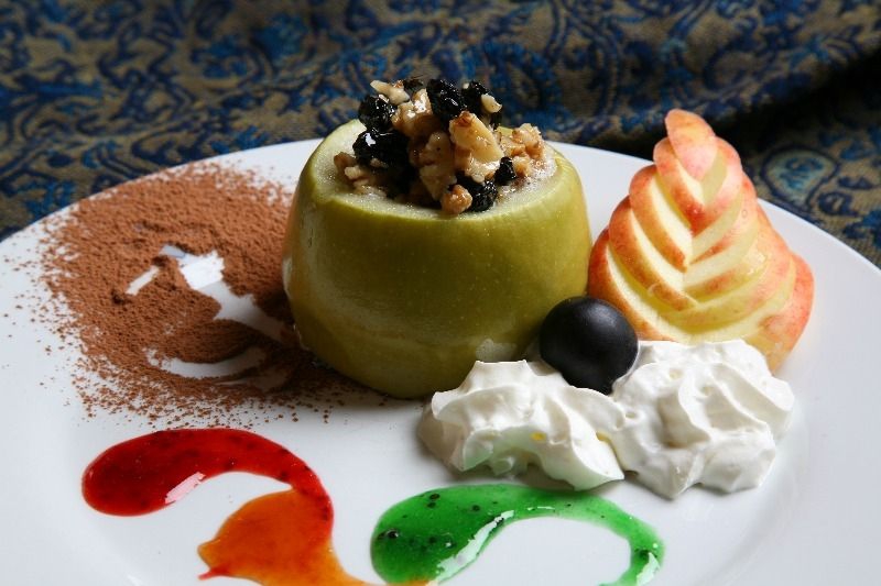 Los propietarios del restaurante están orgullosos de respetar sus tradiciones hasta tal punto que en cada mesa se encuentran galletas orientales junto a delicias como frutas y nueces, además de pahlava y kish-mish. Los huéspedes pueden disfrutar de té o de una pipa de agua mientras ojean el menú, eligiendo finalmente entre los mejores platos regionales. Los chefs son conocidos en toda la región, desde sopa hasta arroz, panes hasta shashliks igualan a los mejores en cualquier otro lugar. Gran parte de la comida, y de aquellos que la preparan, son traídos especialmente desde la vecina Uzbekistán, un país muy respetado por sus productos y la forma en que aparecen en la mesa. Muchos otros restaurantes de Almaty prefieren Uzbekistán como fuente para sus propios ingredientes.