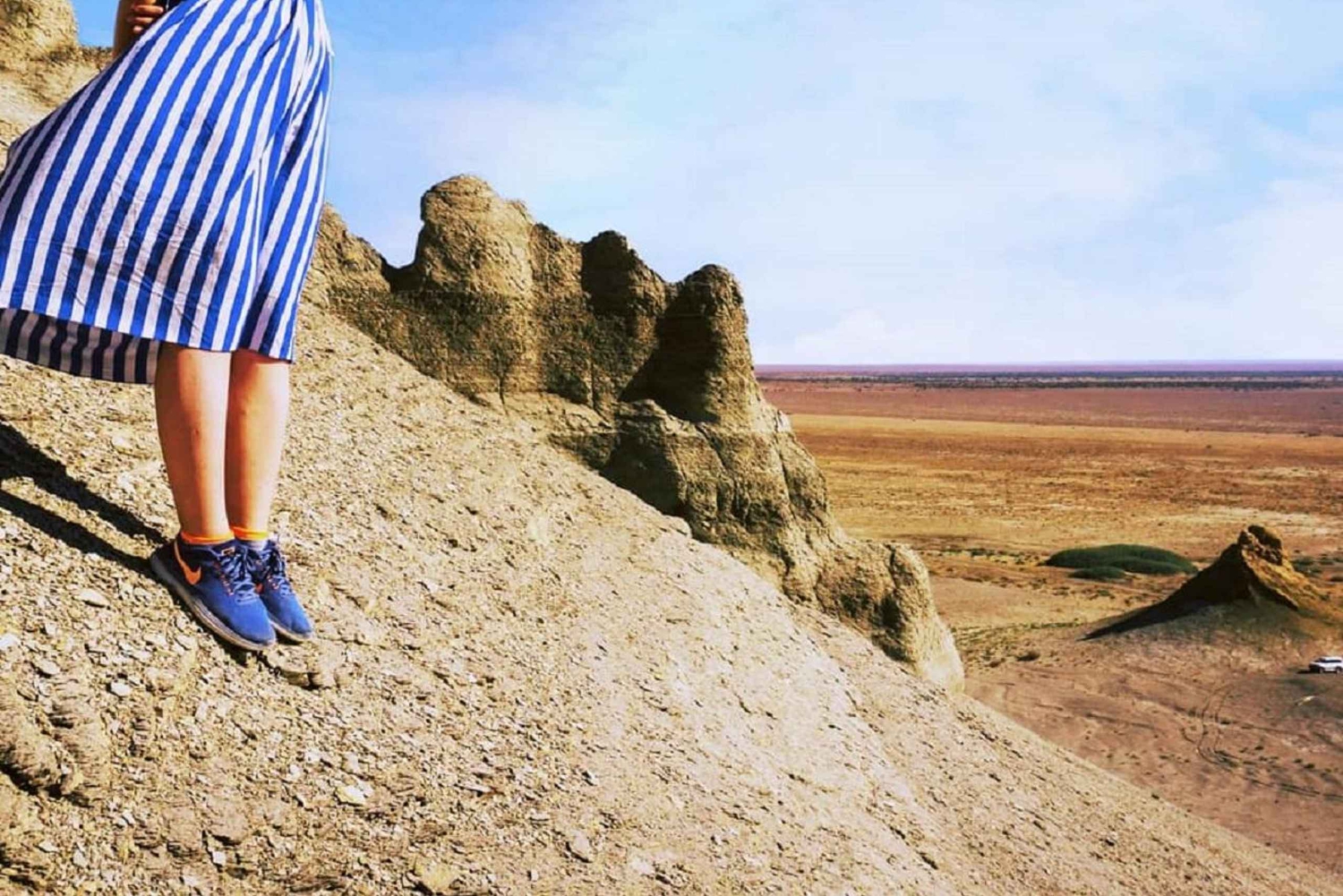 Lähde unohtumattomalle yhden päivän ekomatkalle Aralin keitaalle. Aloita matkasi Aralskissa lyhyellä esittelyllä alueen rikkaasta merenkulun historiasta. Lähde kohti syrjäistä Tastubekin kylää, joka sijaitsee Pienen Araljärven rannalla. Nauti maisemallisesta kävelystä rannikolla, ota henkeäsalpaavia valokuvia ja hyppää halutessasi veneeseen ajelulle kerran kadonneille ja nyt palaaville vesille. Nauti perinteinen lounas paikallisessa majatalossa, jossa voit maistella shubatia, ikonista fermentoitua kamelinmaitoa. Matkusta Butakovin lahden dramaattisia rantoja pitkin, jotka ovat muotoutuneet ajan, tuulen ja veden vaikutuksesta. Tutustu paikallisten yhteisöjen sitkeyteen ja näe omin silmin tämän kerran kuivuneen meren jatkuva luonnollinen elpyminen. Tämä matka on täydellinen matkailijoille, jotka etsivät ainutlaatuisia kokemuksia syrjäisistä paikoista, joissa historia, luonto ja kulttuurinen aitous yhdistyvät.Includes