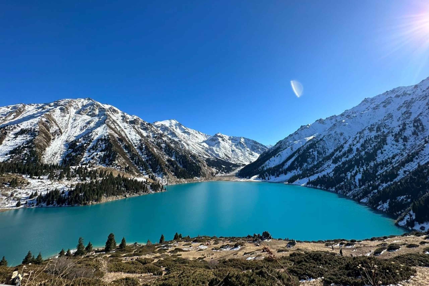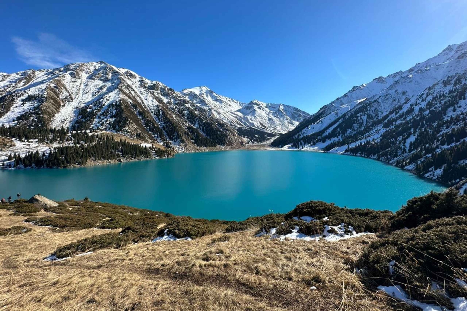 アルマトイ発のガイドツアーで、アルマトイ湖までハイキングをお楽しみください。素晴らしい景色、ピクニック、そして湖の周辺を探索する自由時間をお楽しみください。