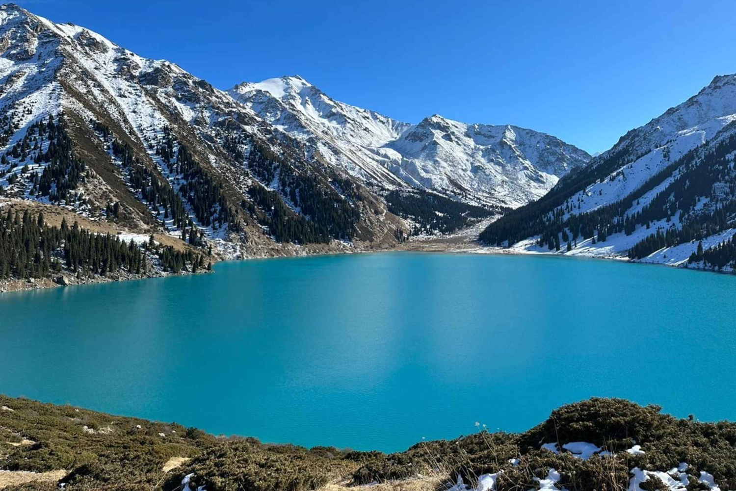 アルマトイのドゥラティ通りで朝のお迎えをさせていただき、冒険を始めましょう。ザイリイスキー・アラタウ山脈へ向かい、そこからビッグ・アルマティ湖までハイキングを開始いたします。 パイプまたはより直接的なルートに沿って6〜7 kmのルートを進み、美しいアルプスの風景をお楽しみください。登りながら、周囲の山々や渓谷の息をのむような景色をお楽しみください。 鮮やかなターコイズブルーの水で知られる、絵に描いたようなアルマトイ大湖に到着します。自由時間には、周辺を散策したり、ピクニックを楽しんだり、自然の中でリラックスしたりしていただけます。 訪問後は、出発地点までハイキングで戻り、アルマトイへお帰りください。Includes