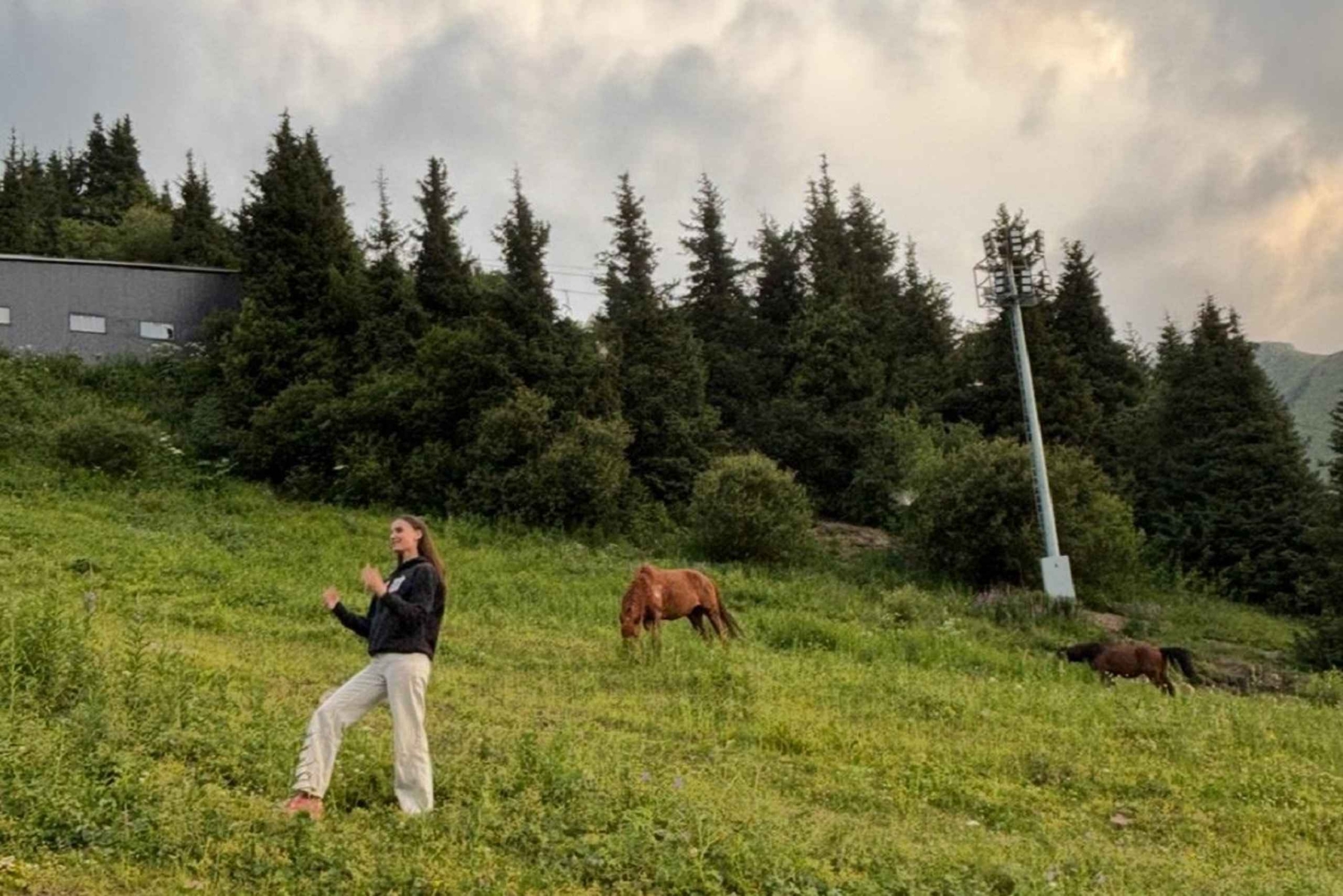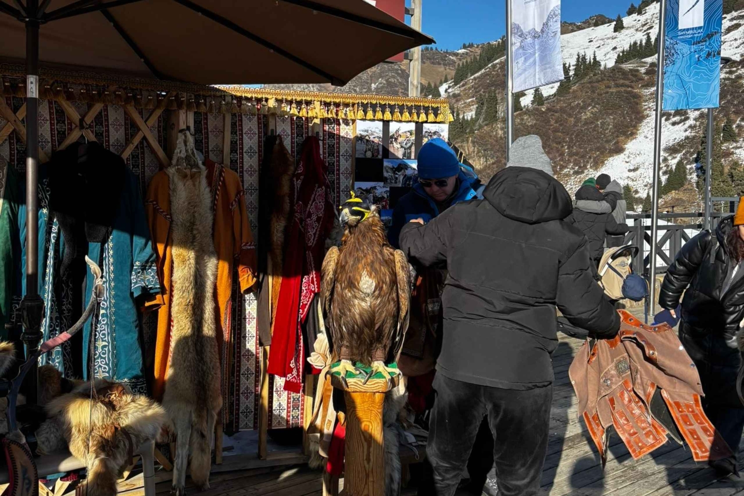 アルマトイのホテルへお迎えに伺い、ツアーを開始いたします。快適な電気自動車に乗って、山へ向かいましょう。 まず、高地にあるスポーツ施設、メデオ・スポーツ・コンプレックスを訪問しましょう。有名なアイスリンクと842段の階段をご覧ください。ダムの写真を撮り、ザイリイスキー・アラタウ山脈の素晴らしい景色をご堪能ください。 次に、地元で人気のアパ・カティア・カフェに立ち寄りましょう。温かい紅茶やコーヒーをお楽しみいただき、リラックスした雰囲気に浸ってください。 続いて、海抜2,260メートルにある絵画のように美しいシムブラク・スキーリゾートへお進みください。少し時間をかけて散策し、リラックスしてパノラマの景色をお楽しみください。ご希望の場合は、伝統的な衣装を着たワシとの写真撮影も可能です(料金に含まれています)。 最後に、アルマトイの中心部からわずか5分の、新鮮な空気の楽園、コクトベ公園を訪問しましょう。丘の上から街全体をご覧いただき、ビートルズの銅像をご覧ください。よろしければ、逆さまの家をご覧ください。お子様向けの小さな動物園もございます。 追記:ケーブルカーは含まれていません。T1、T2ポイントの上のスキーリゾートのベースポイントからの移動は含まれていません。ケーブルカーのチケットは、現地でご購入ください。お一人様15米ドルです。Includes