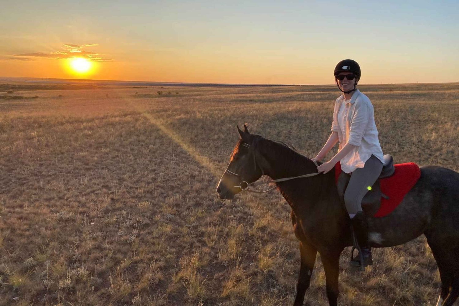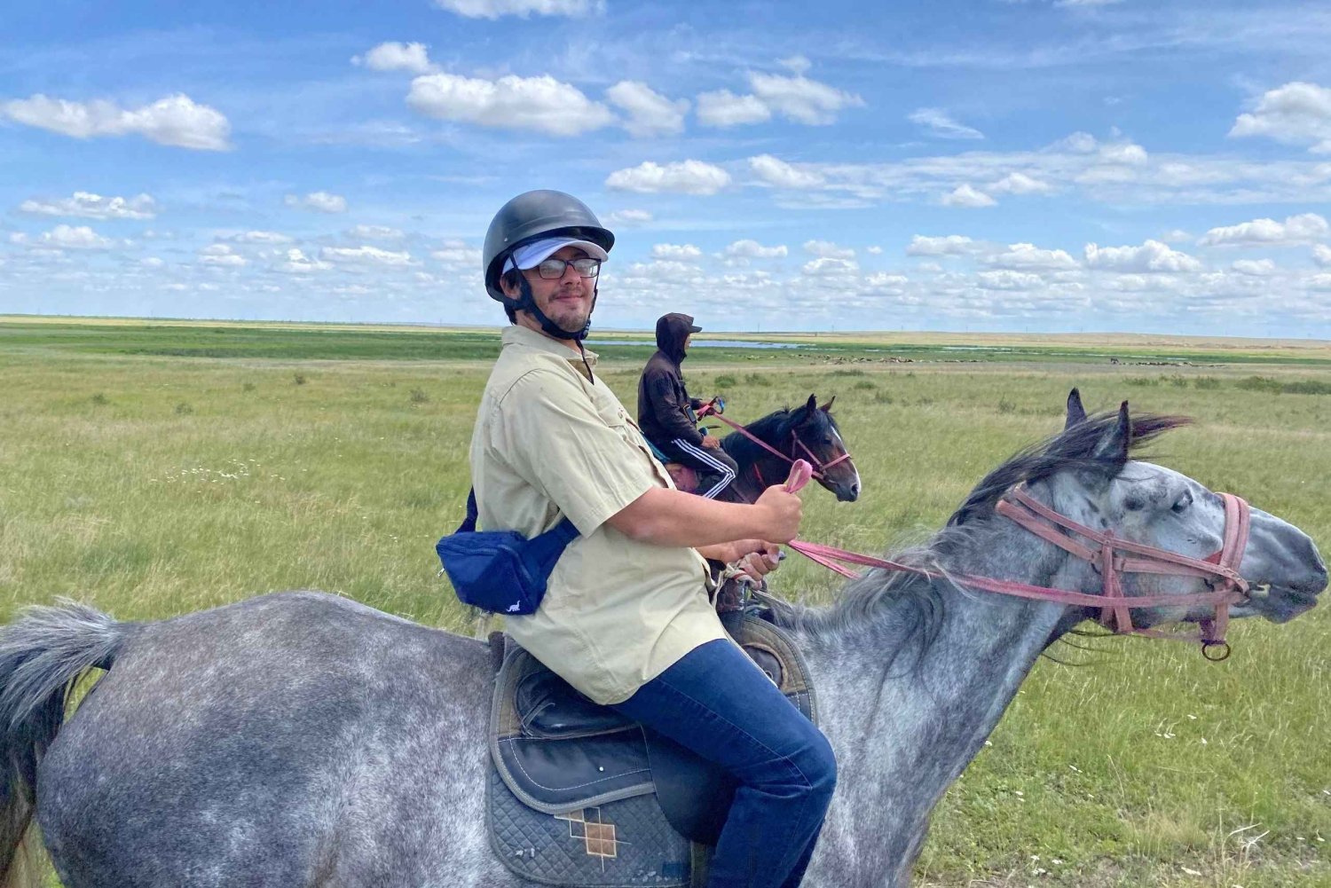 Испытайте три дня аутентичной жизни на ранчо и степных приключений, завершенных конной прогулкой к историческому мавзолею Кабанбай Батыра, идеально подходящей для любителей природы, гурманов и ценителей культуры.